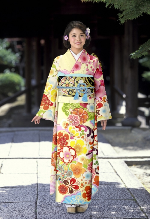 「松竹梅に宝尽くし、吉祥文様を散りばめた古典柄に金駒刺しゅうが豪華さを添えます。」